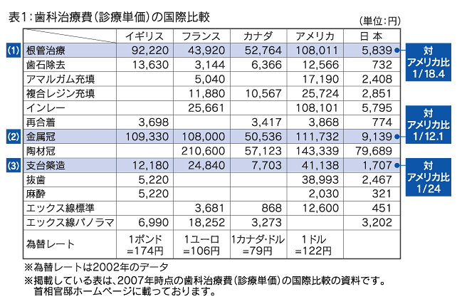 流暢な日本語を話される為、色々な雑談をさせて頂きました。とても楽しく話をさせて頂いたのですが、仕事もしなくてはいけません。その日は型取りの予定だったので、どんな詰め物にするか決めてもらわなければなりませんでした。セラミック○○円、金歯○○円、銀歯約5000円・・・と言った瞬間、『安!!!』の反応。5000円の治療費に対し、安いと言われる事はあまりなかったので、とても新鮮でした。そうです、日本の治療費は諸外国と比較し、物凄く安いのです。少し古い表ですが見れば一目瞭然ですね(どこかのHPから引用させて頂きました不都合があれば消します)。安く治療が出来る事は良いことなのですが、使用材料まで国が定めてしまっているのです。しかもかなり質の落ちる材料のみ・・・。歯の痛みは辛く、歯は無くなれば一生生えてこない大切なものですからね。「銀歯しか保険効かないんです」と言う時の罪悪感がすごく嫌です。もっと良い材料が保険に組み込まれることを望みます。